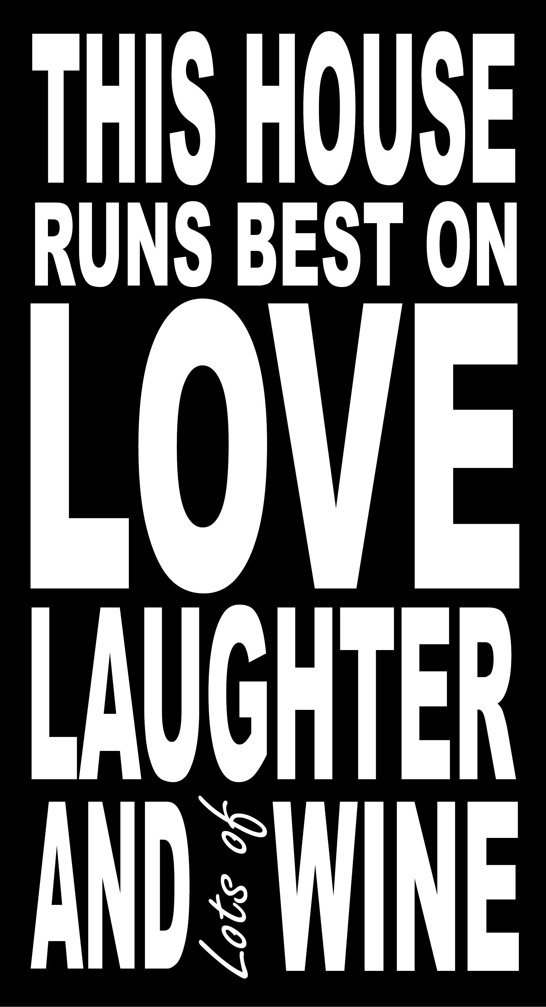 THIS HOUSE RUNS BEST ON LOVE LAUGHTER AND LOTS OF WINE
